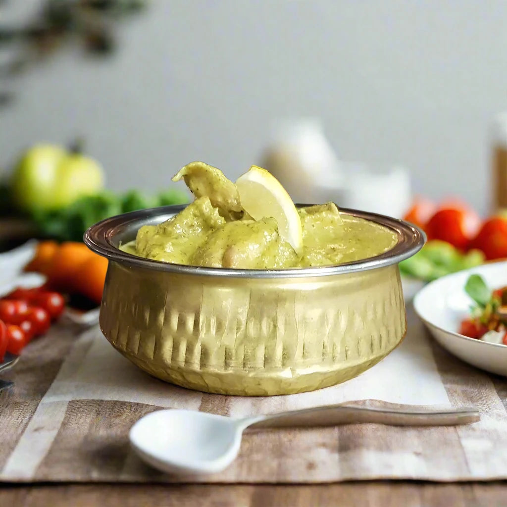 Savor the royal flavors of Murg Shalimar, a Mogul-inspired curry featuring tender pieces of chicken in a richly spiced sauce. Infused with the aromatic blend of nuts, spring onions, mint, green peppers, and a splash of lime juice, this dish is perfectly balanced with hints of white pepper, fresh coriander, and ginger. A regal choice for those who appreciate bold and authentic Indian flavors!